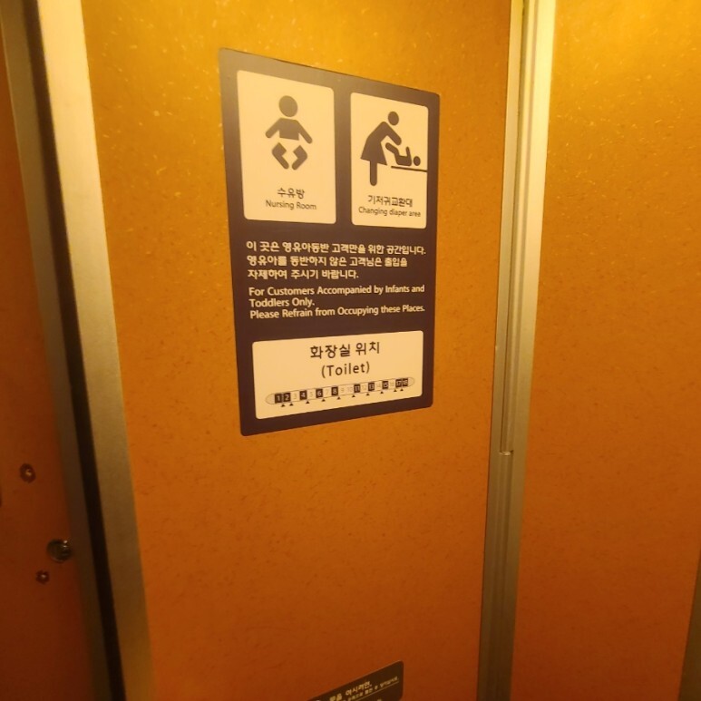 아쉬운 점은 관리가 잘 되지 않는 모습이었어요. 일단, 공간이 너무 협소해서 아기랑 엄마가 들어가면 꽉 차고 비좁겠더라구요. 수유시 앉을 수 있는 의자 하나와 기저귀 갈이대가 있었구요. 밑으로 콘텐트가 하나 있어 쓰실 있 있을 경우 사용하시면 되겠더라구요!
