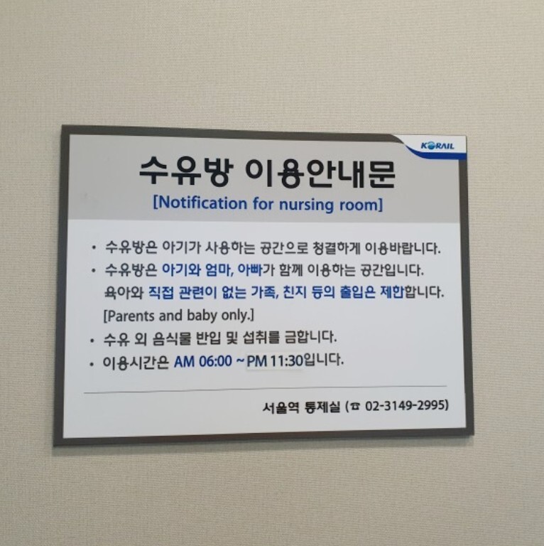 저는 모유수유를 오랜 기간 했었어요. 그래서 어디를 가나 수유실이 보이면 눈길이 많이 가는 편이에요. 특히나 명절을 앞둔 요즘에는 기차역이나 기차안에 수유를 할 수 있는 곳이 있는지 궁금하신 분들 많으시죠? 제가 서울역과 KTX 기차 안에 수유실과 기저귀 갈이대 위치와 모습을 찍어왔는데 한번 공유해볼게요!