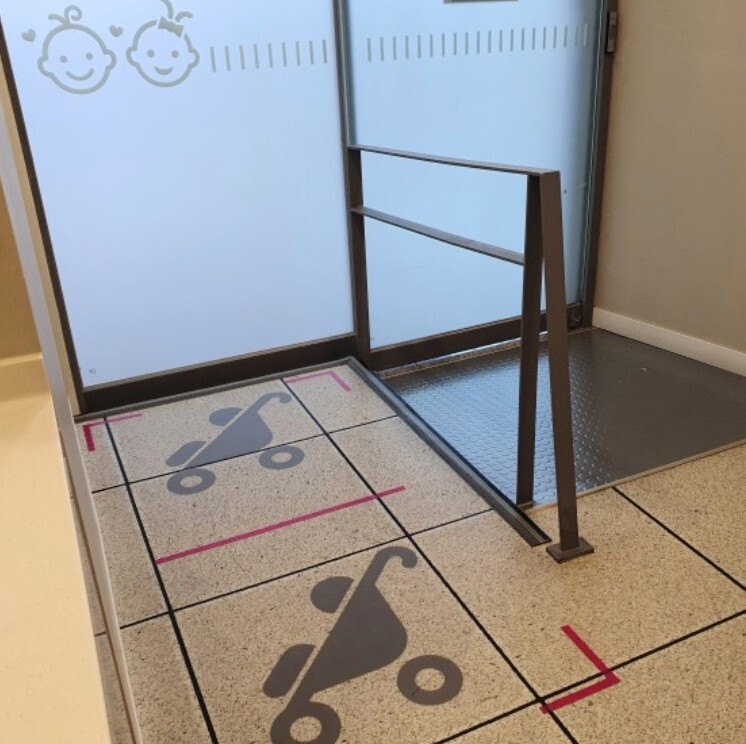 옆으로 유모차 정리대와 손씻는곳, 전자레인지까지 보였어요. 전자레인지가 있어서 식은 분유나 이유식을 데워먹일 수 있겠더라구요. 그리고 당연한 기저기 갈이대. 2개가 있었구요. 잘 관리되어 깨끗히 보이는 모습이었답니다.