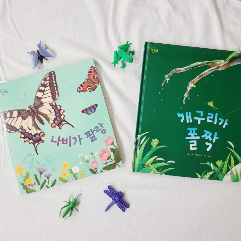 그외에도 수많은 종류의 사물이 작은 피규어 모양으로 표현되어 있어, 현재 4살까지 아이가 다양한 상황에서 가지고 놀 수 있는 최애 장난감이다. 예를 들어, 자연전집 볼 때는 이렇게 잠자리, 애벌레 등 실물을 관찰하듯 보여줄 수 있어 효과적이다.