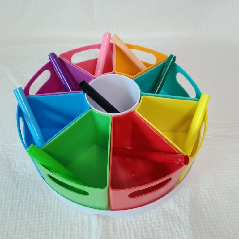 이건, 아기가 가지고 노는 여러가지 미술놀이 장난감 및 소꿉놀이 소품 정리용으로 구매했다. 수납공간이 넓고 칸이 구분이 되어 있어서 색연필, 크레파스, 풀, 테이프 등 다양한 종류의 아기 미술용품들을 넣어 사용가능하다.