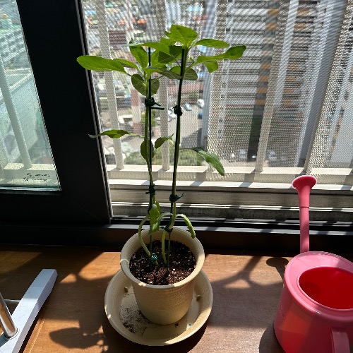 직접 다이소에서 골라온 핑크 물조리개로 물도 주고 '사랑해 새싹아'라고 사랑도 외쳐주는 모습이 너무 예뻤다.