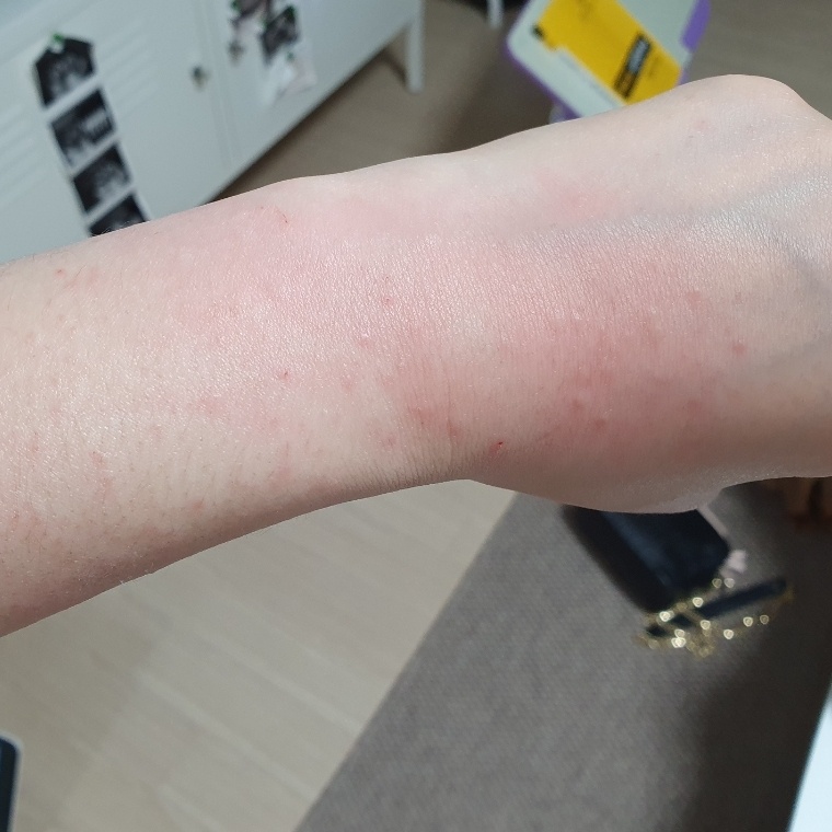 그런데 다시 20년 6월 27일경 2차 발생(목, 팔, 손등)하더니 점차 심해져서 밤새 긁고 잠도 못자고 울며 보내다가 20년 7월 4일 경 제법 들어가는 모습을 보이며 서서히 났기 시작했어요.