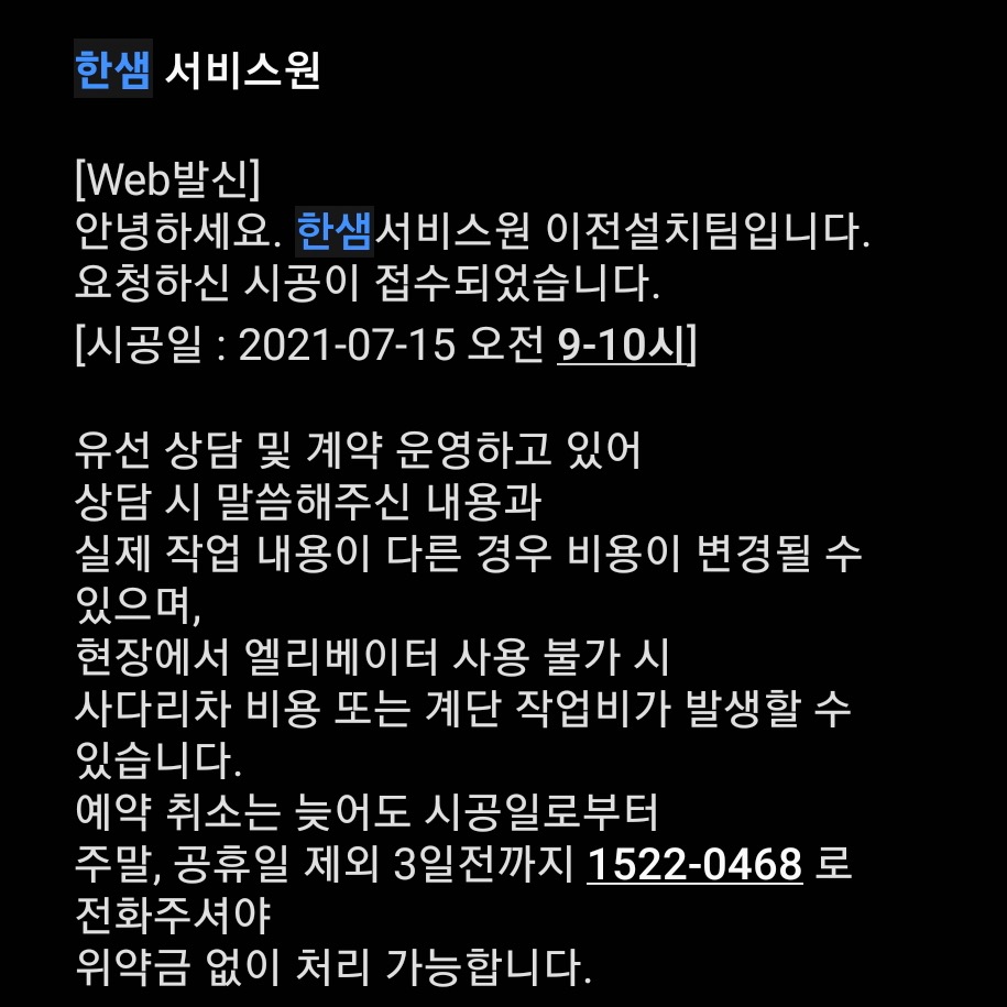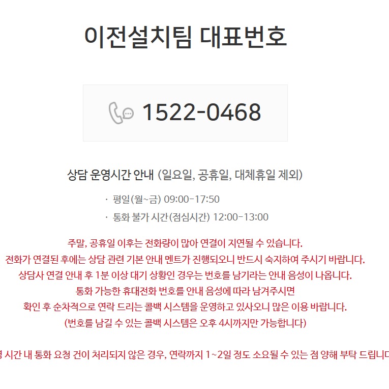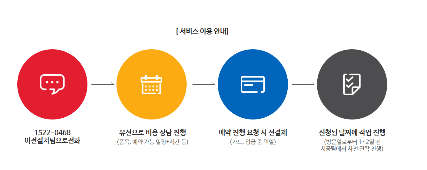 이전설치팀으로 전화해서 위와 같이 비용 및 일정을 조율해 상담을 진행했습니다.