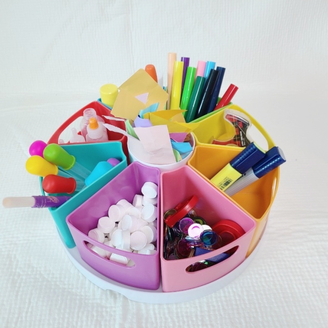 저희 집에서 구매한 제품은 러닝리소스 제품입니다. 이 제품은 꼭 같은 제품을 사용할 필요 없이 아기 미술도구 보관통을 하나 구비해 두시면 아주 오래 쓸 수 있고 유용합니다. 어렸을 때는 장난감에 흥미를 보이던 아이가 조금씩 클수록 용도가 제한되어 있는 장난감들에서 시시함을 느끼더군요. 이제는 소리 나고 모양이 특정돼 있는 장난감보다 블록, 도형교구, 크레파스 등 여러 가지 상상력을 펼칠 수 있는 도구들에 더 관심을 많이 가지는 게 보입니다. 미술도구는 거실 한쪽에 연습장 같은 종이와 구비만 해두시면 아이가 언제든 지나가며 오랜 시간 재미있게 놀 수 있어 정말 유용하게 오래 쓰고 있는 공간이자 도구입니다.