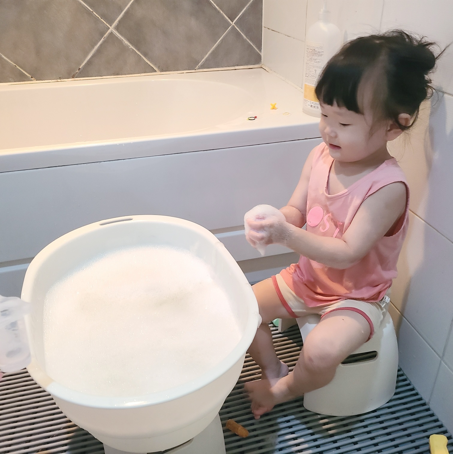 처음에 구입목적은 신생아 욕조로 구매했습니다. 다*소, 허니** 등 유명한 제품들을 다 구매해봤습니다. 그렇지만, 이 제품만큼 가볍고 깨끗하며, 아기 크기에 딱 맞는 제품이 없었어요. 결국, 이 제품을 두 개 사서 비누용, 워시용으로 잘 사용했는데요. 아기가 더 이상 들어갈 수 없는 사이즈가 되면서 욕조를 바꾸게 되었습니다. 그 이후 남은 제품을 버리거나 재판매하지 않고 다용도로 잘 사용 중인데요. 저희 집에서 사용 중인 용도는 긴 설명글 없이 아래 사진으로 설명해 보겠습니다.